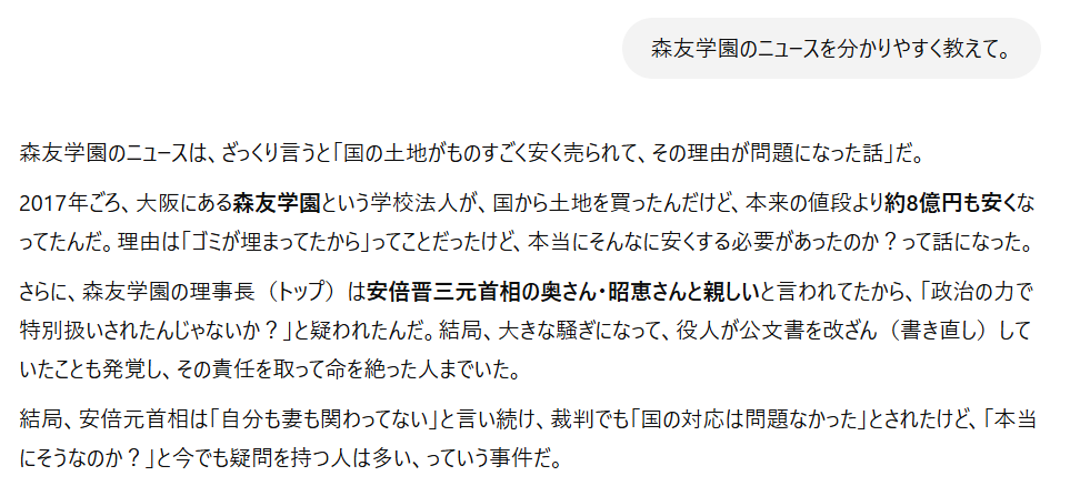 ChatGPTのデフォルト回答は長いし、大人向け。